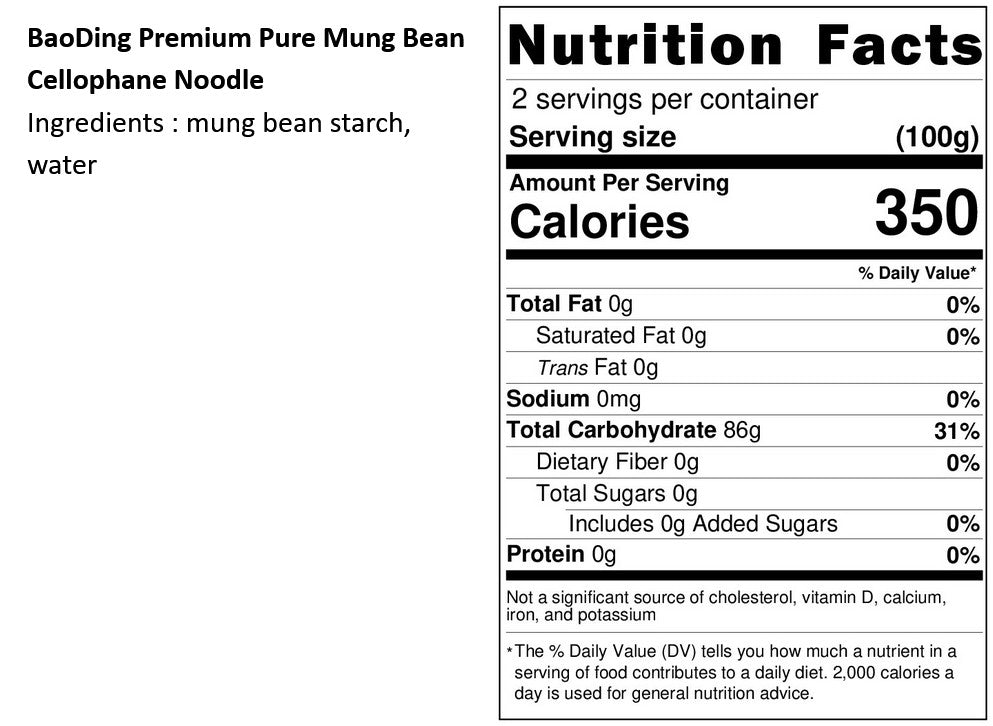 The Bao Ding Premium 100% Pure Mung Bean Vermicelli contains resistant starch (RS), which can replace over 6% of the total carbohydrates in the diet.