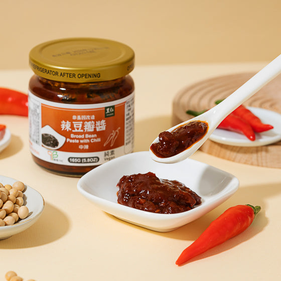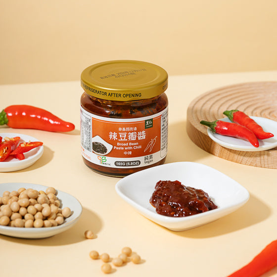 Ingredients : Red chili pepper, non-GMO soybean, broad beans, salt, fructose, sesame oil, aniseed, xanthan gum
