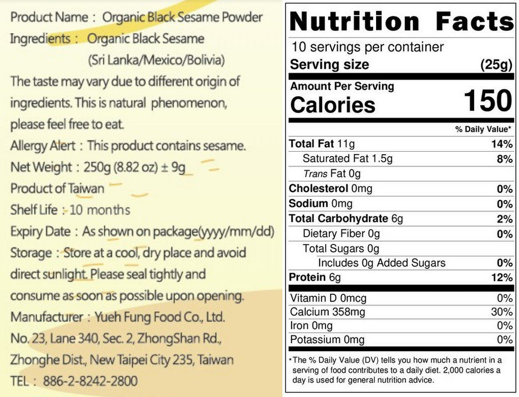 黑芝麻的營養藏在種子裡,為了方便消化與吸收,悅豐將有機黑芝麻磨成粉。將芝麻堅硬且不好消化的外殼磨碎成粉後,方便攝取芝麻營養,也能讓得來不易的有機黑芝麻能發揮最大效用!