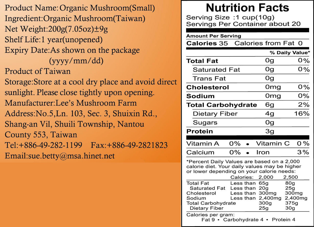 Ingredients: Organic Shiitake Mushrooms (Taiwan)