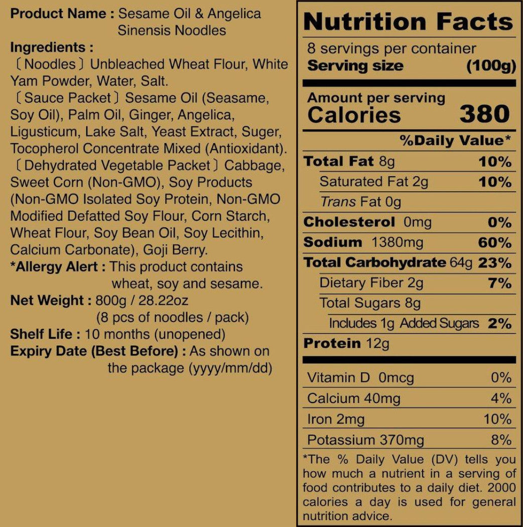 *Seasoning Pack: Sesame oil, palm oil, ginger, angelica root, chuanxiong rhizome, lake salt, yeast extract, sugar, mixed concentrated tocopherols (antioxidant)