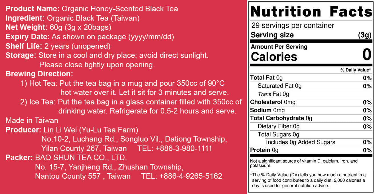 Ingredients: Pesticide-free Tea Leaves (Taiwan)