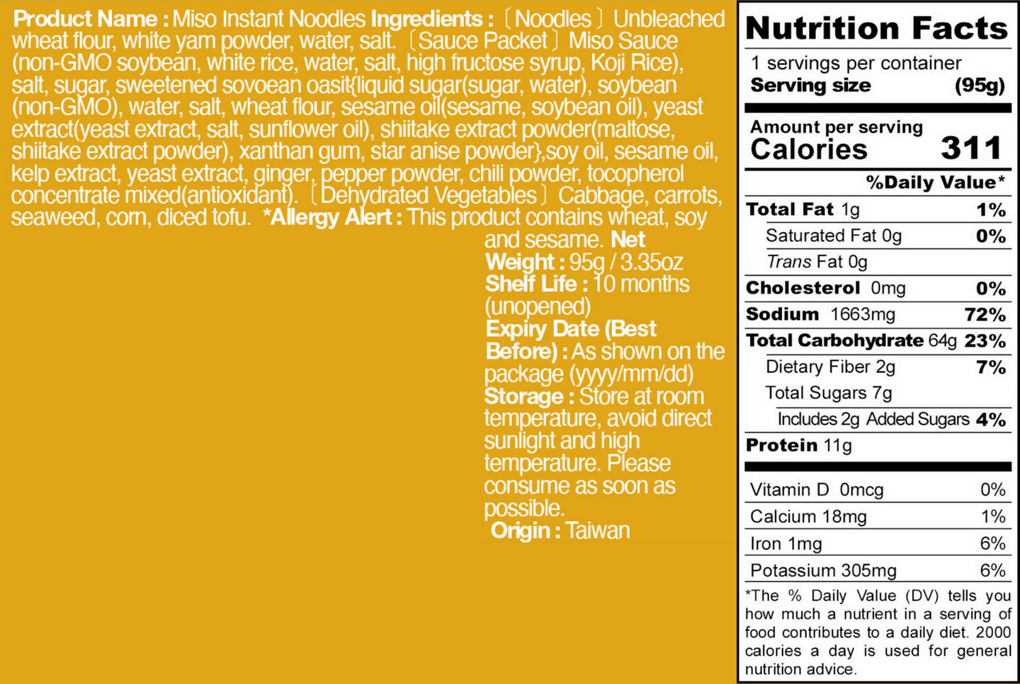 ●Noodles: Steamed and dried, not fried, no modified starch or dough improvers added.