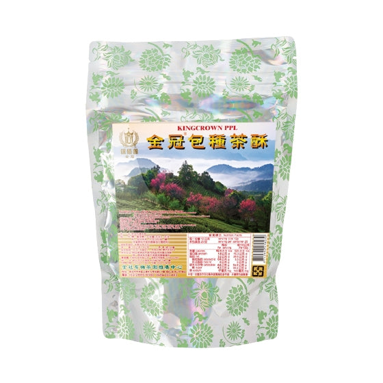 來自坪林金冠有機茶園的手工包種茶酥,多層次口感,酥脆香甜,輕咬一口,茶粉與花生粉清香四溢,甜而不膩,是年節應景推薦茶食。