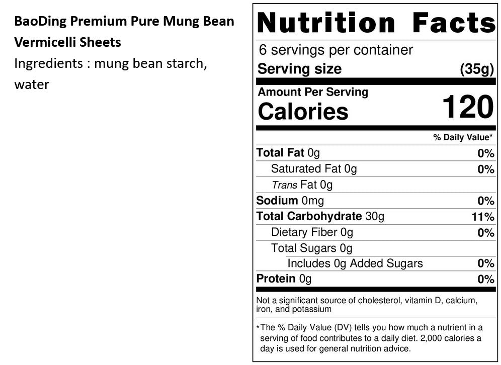 Bao Ding Premium 100% Pure Mung Bean Vermicelli contains resistant starch (RS), which can replace more than 6% of the total carbohydrates in the diet.