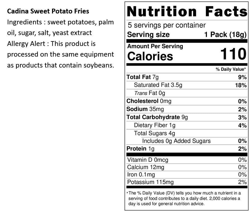 Ingredients: Sweet potato, palm oil, sugar, sea salt, yeast extract