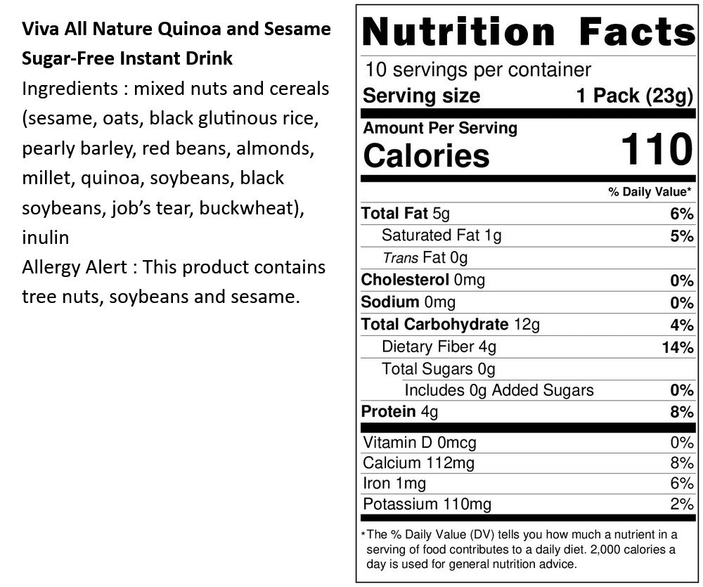 Ingredients: Mixed nuts and grains (sesame, oats, black glutinous brown rice, pearl barley, red beans, almonds, millet, quinoa, non-GMO soybeans, black beans, Job's tears, buckwheat), chicory fiber